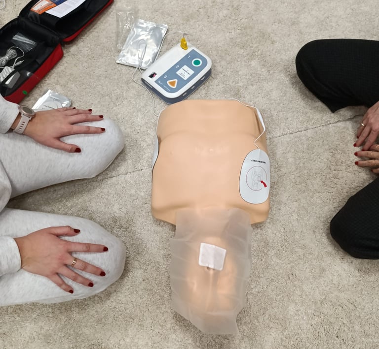 Nuestra metodología prioriza la práctica sobre la teoría. Sabemos que lo más importante es que puedas aplicar lo aprendido en situaciones reales. Por eso, nuestras sesiones están repletas de actividades prácticas con muñecos de simulación y ejercicios dinámicos, complementados por explicaciones teóricas breves y claras que sirven como base.